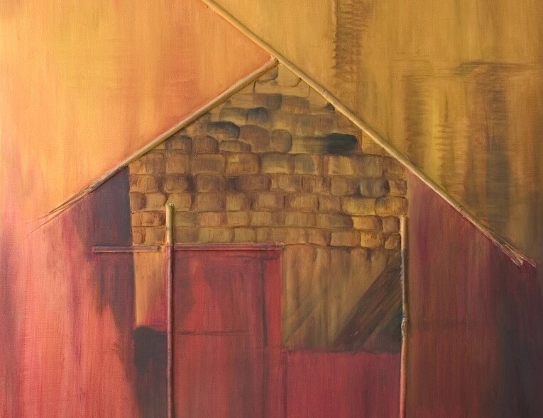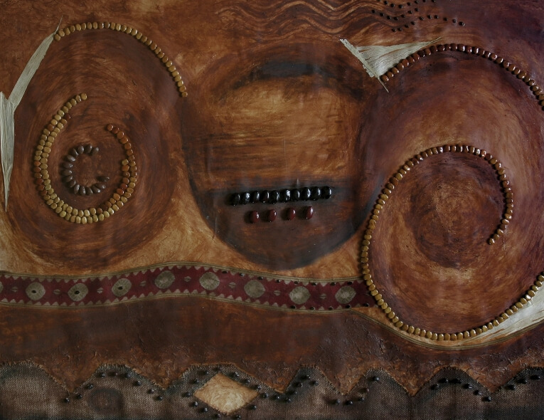 inspired by the traditional patterns of handwoven mats and cloth, this painting pays homage to their beauty and the symmetrical designs.