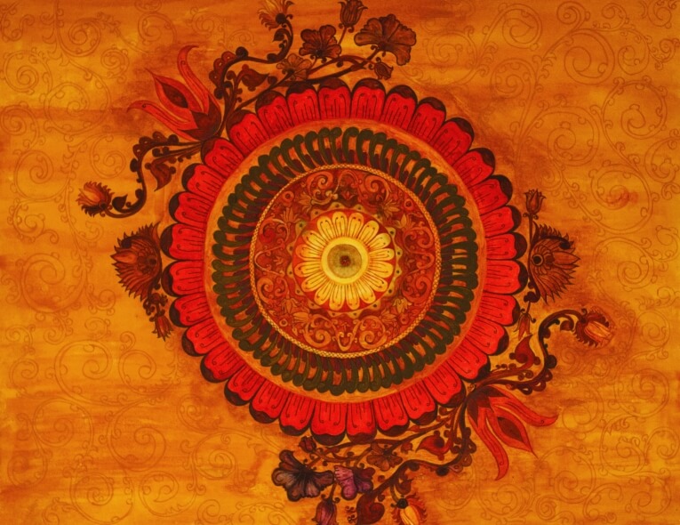 a sensitive reworking of traditional motifs and designs, using the media as used by local artists for centuries.