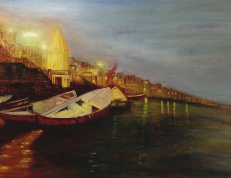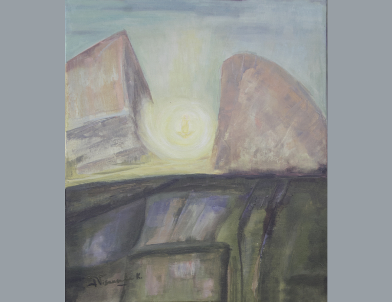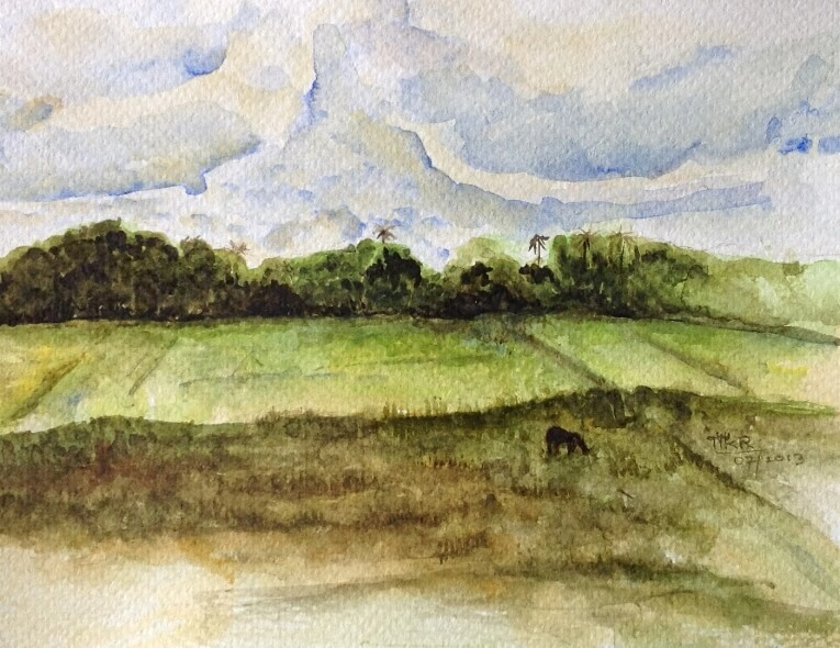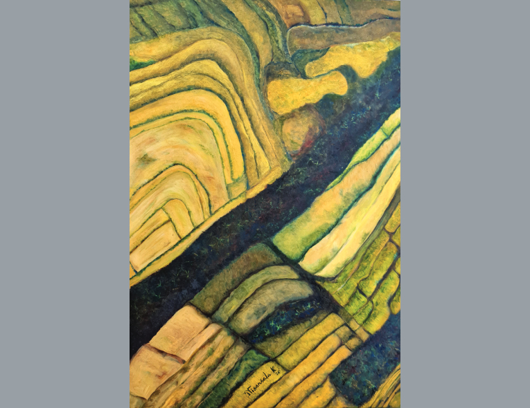 the artist’s brilliant abstract depiction of a traditional village in Sri Lanka, capturing the vibrant natural environment, its order and serenity.