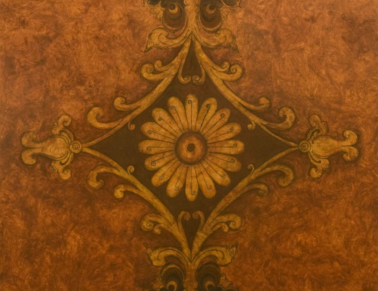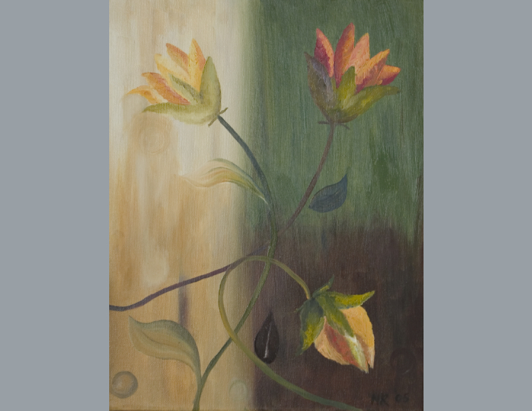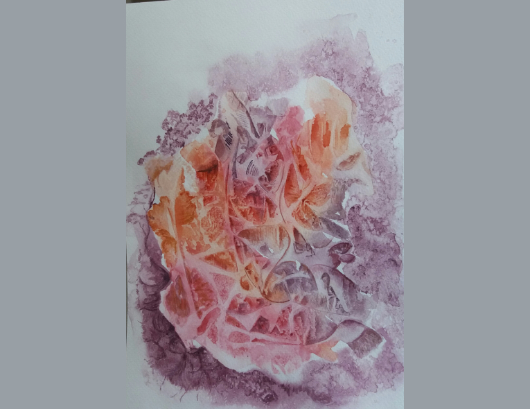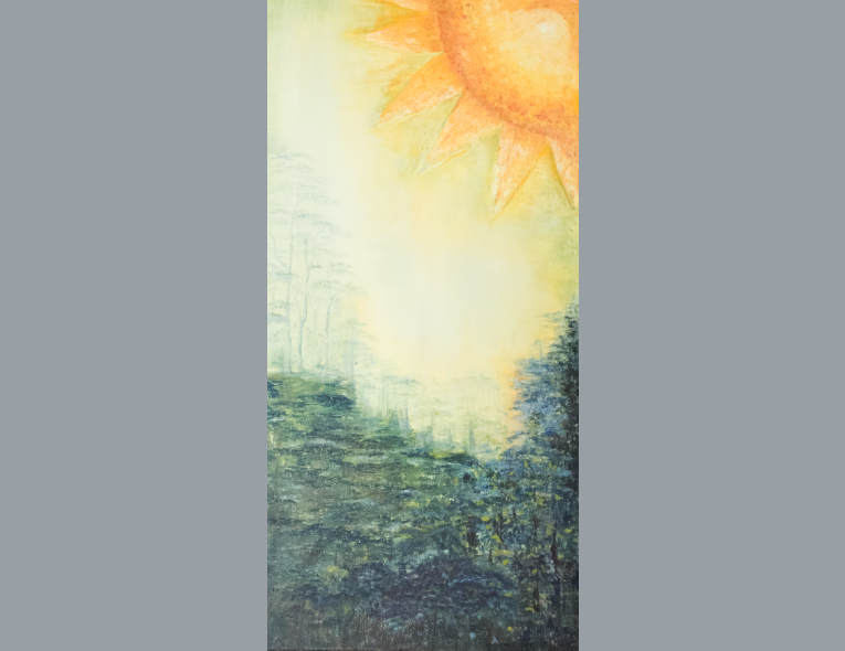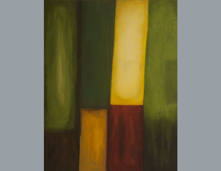 a radiant abstract image playing on the many tones of a few colours that have been used with deft skill.